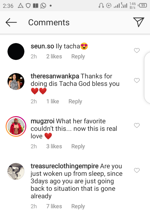 The popular reality TV star and Instagram sensation Anita Natacha popularly refer to as Tacha has been attached by her followers after showing sympathy over Funke Akindele and her hubby's community service.