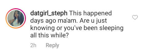 Meanwhile some fans have called her out saying she just awake from sleep because this happened days ago why now telling them this now.